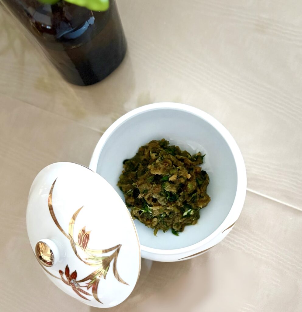 昨日産直市場で買ったフキノトウで、蕗味噌を作った。