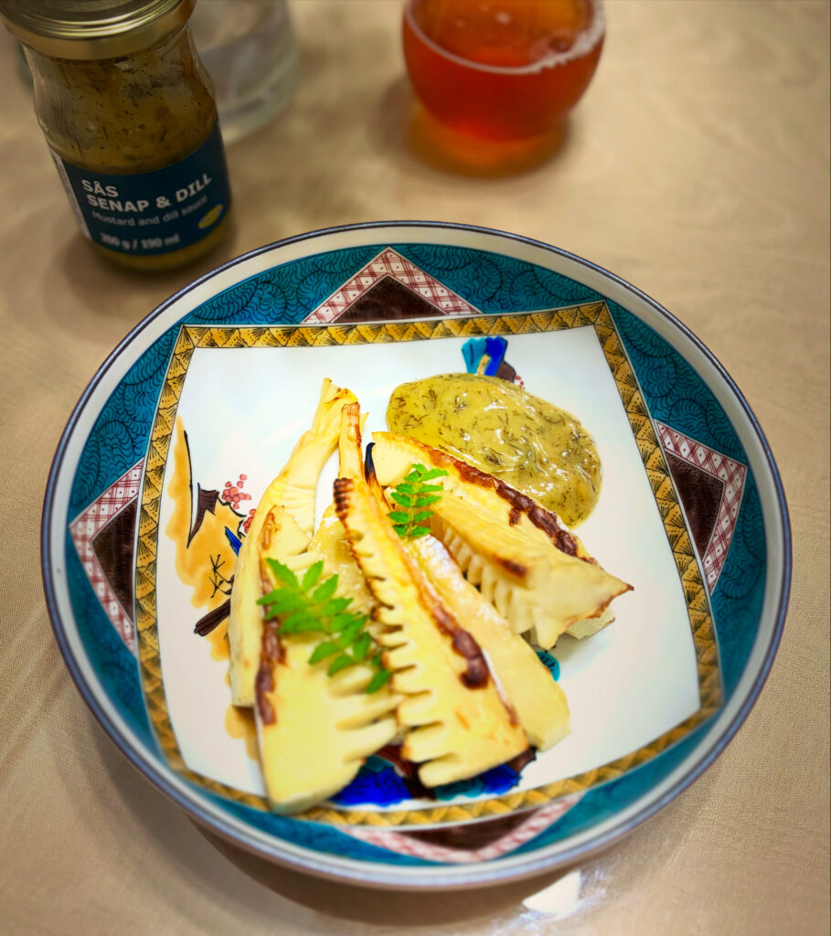 昨夜は、筍をグリルで焼いて、娘からもらったIKEAのマスタード&ディルソースを付けて食べた。