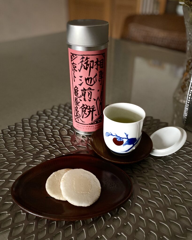 自分のためにお茶を淹れて、友人の京都土産のお煎餅を食べた。