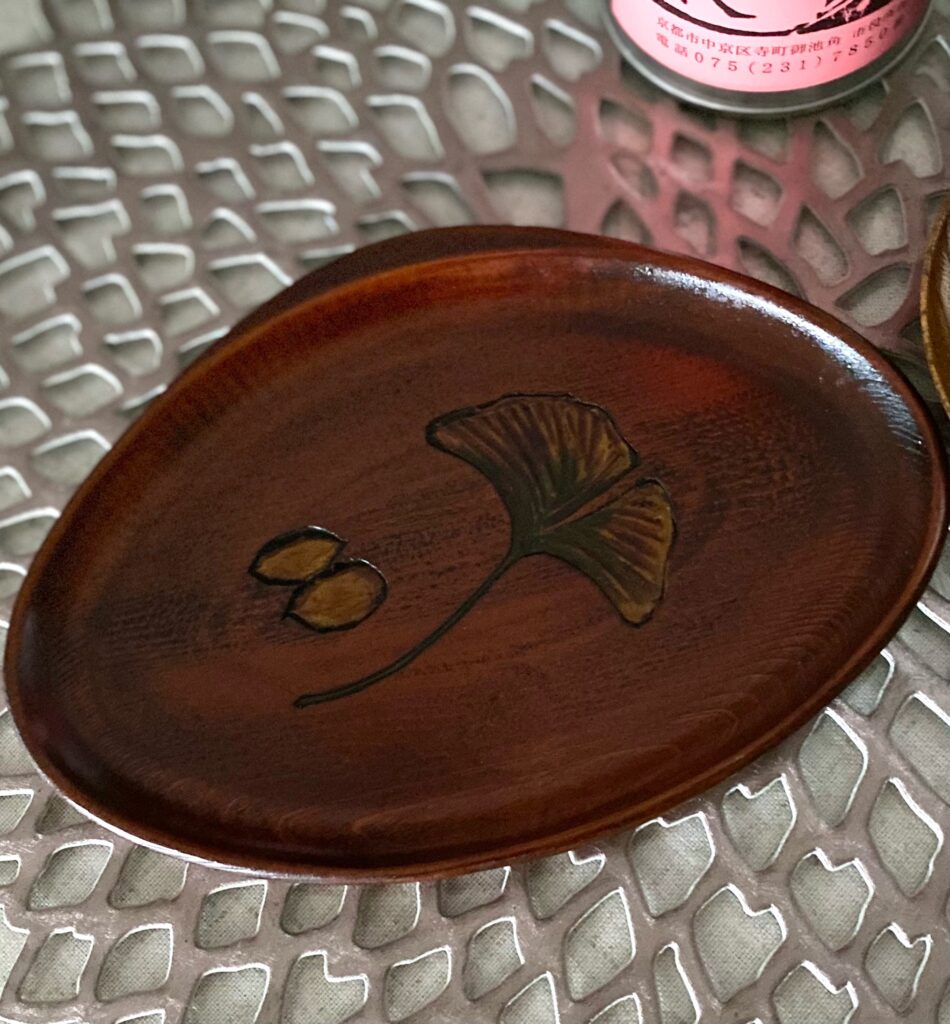 祖父が彫ってくれた銀杏の模様の菓子器を使った。