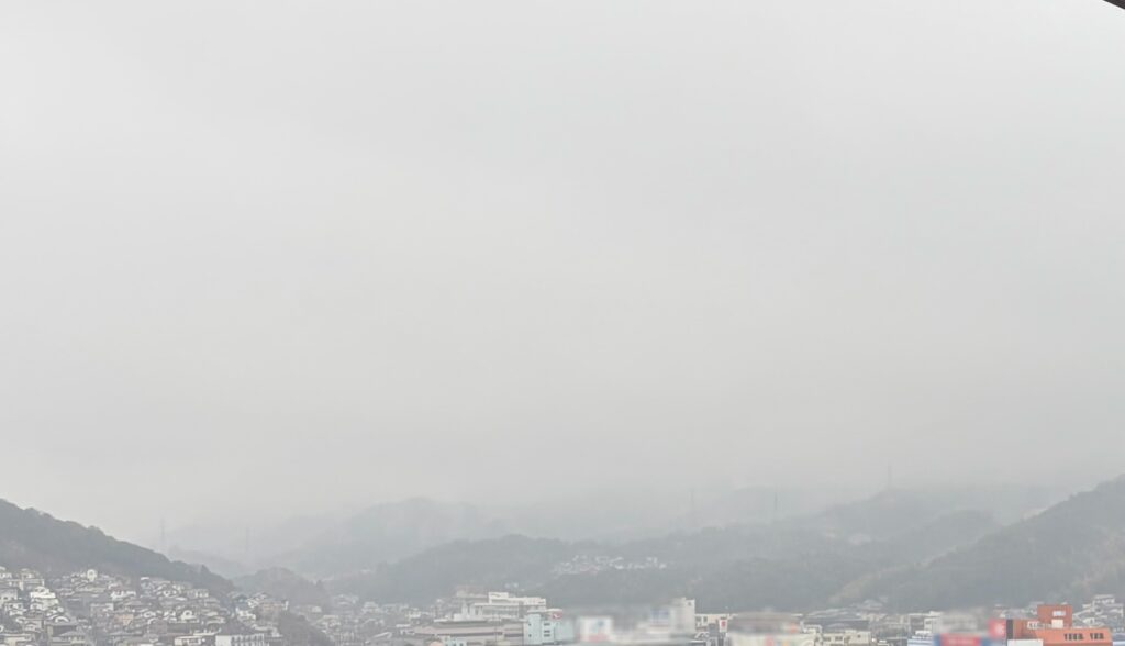 遠くの山も白く煙って見えなくなってきたので、山の中腹にある墓地へ行くのは明日(弟の月命日)に日延べした。