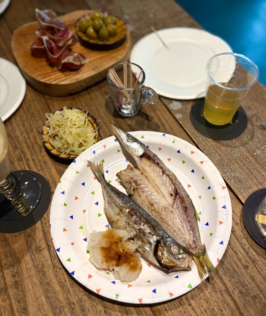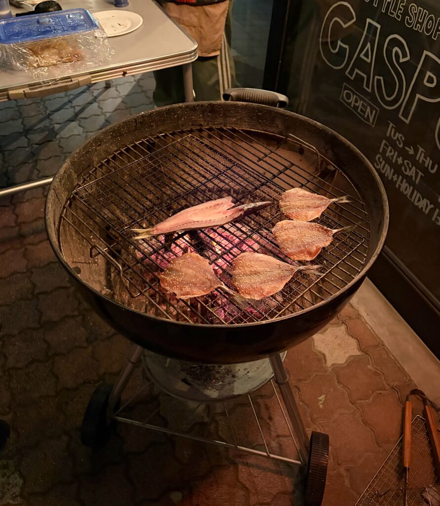 昨夜は、行きつけのブルワリーで催された、仕事関係のかたからプレゼントされたという「一夜干しを炭火で焼いて食べる会」に参加して、焼き立ての一夜干しをご馳走になった♪