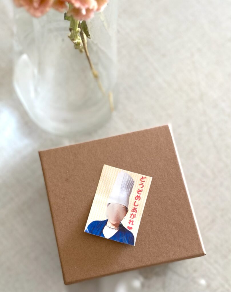 箱の蓋には、シェフハットを被った友人のシールが貼ってある^^