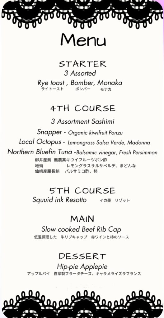 お料理は、赤い蝶ネクタイのバースデーボーイくんのお嬢さまご夫妻が特別メニューを準備して下さった。