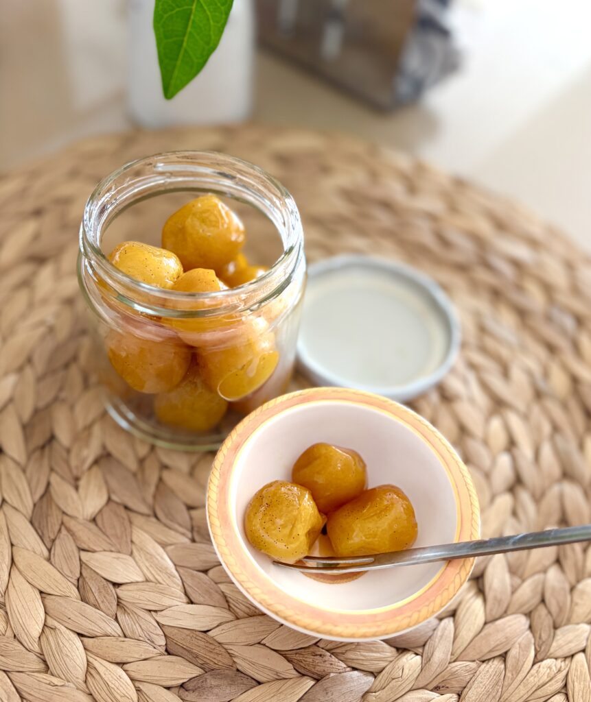 今日のおやつは、いただきものの金柑の甘露煮♪