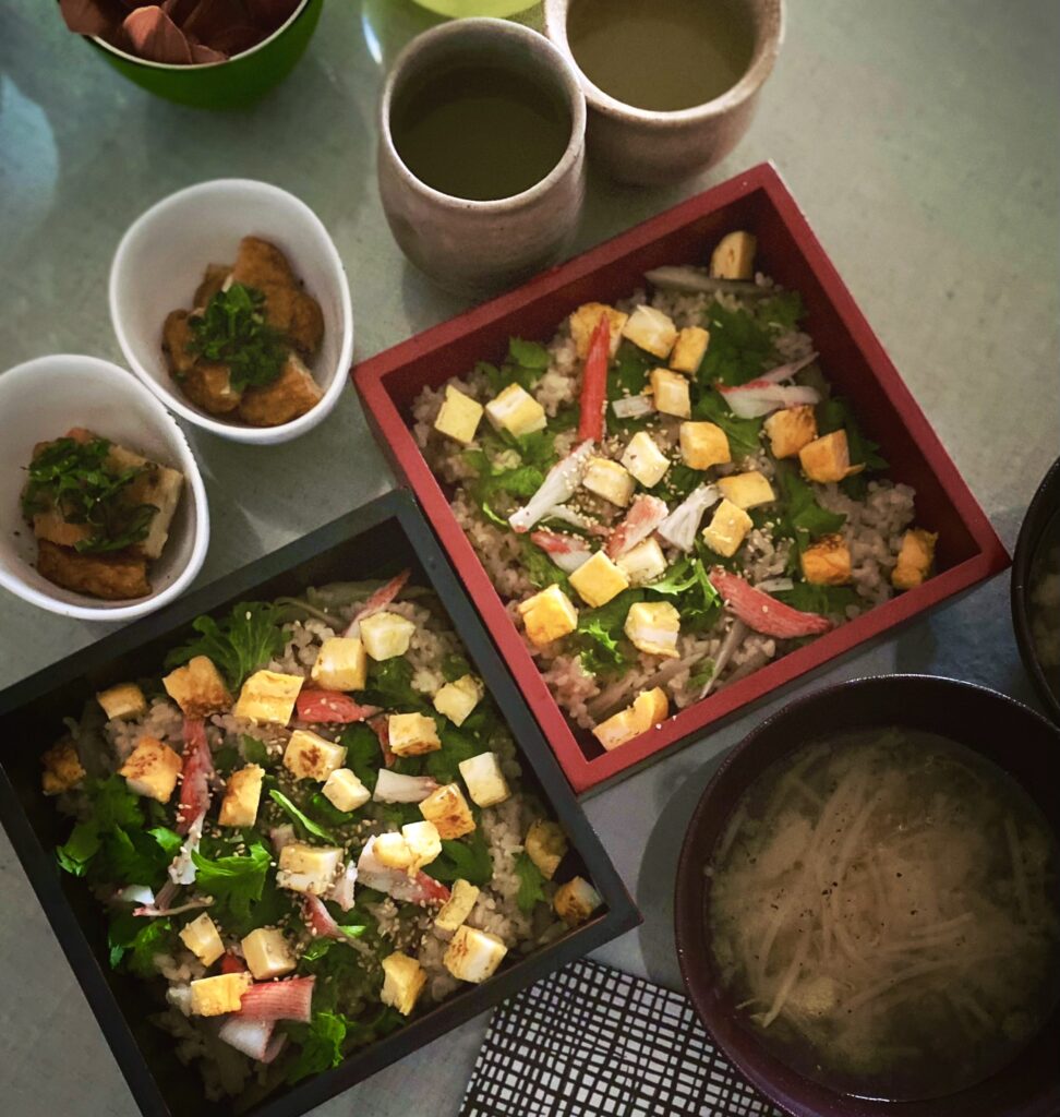 昨夜の残りの玄米ご飯をすし飯にして、