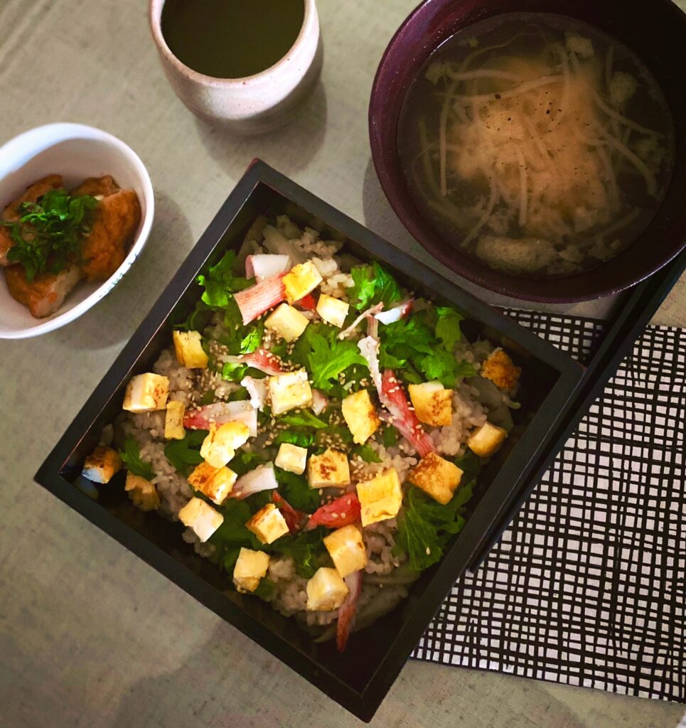 今日の昼食は、半端に残った食材を使って、「散らし寿司定食(?笑)」を30分で仕上げた♪