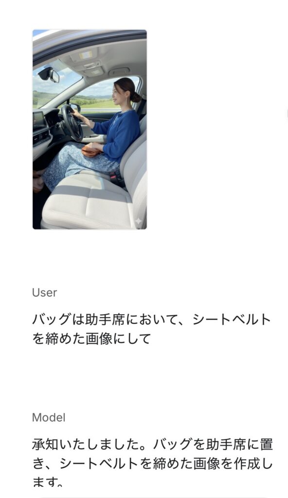 シートベルトを締め忘れ、バッグを膝に置いた片手運転の道交法違反の画像の後、