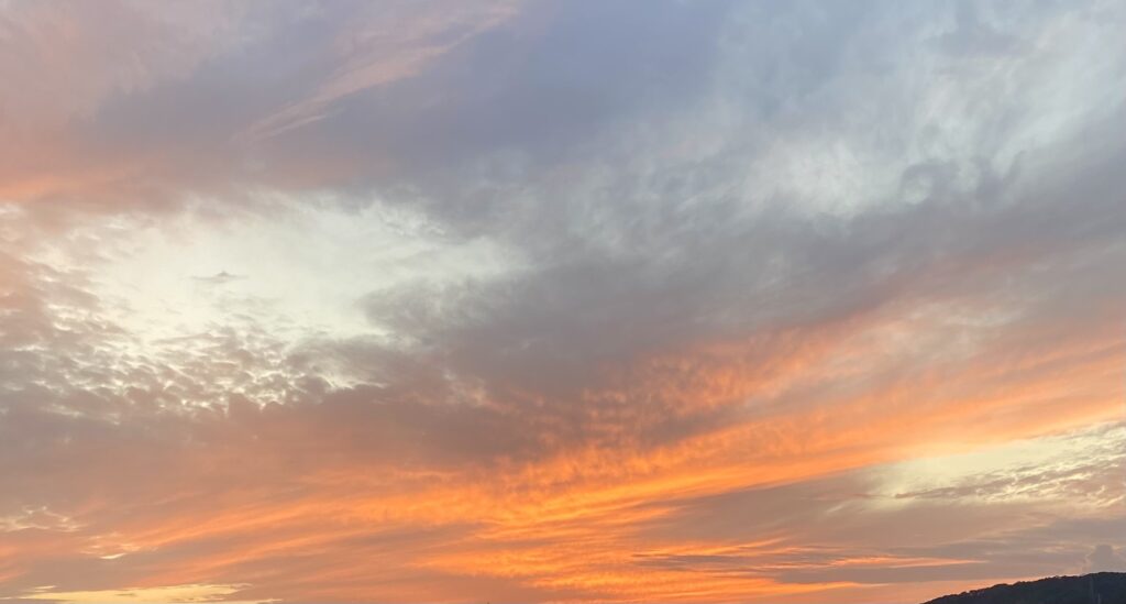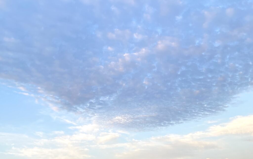 羊雲と鱗雲のミックスみたいな雲が浮かんで、