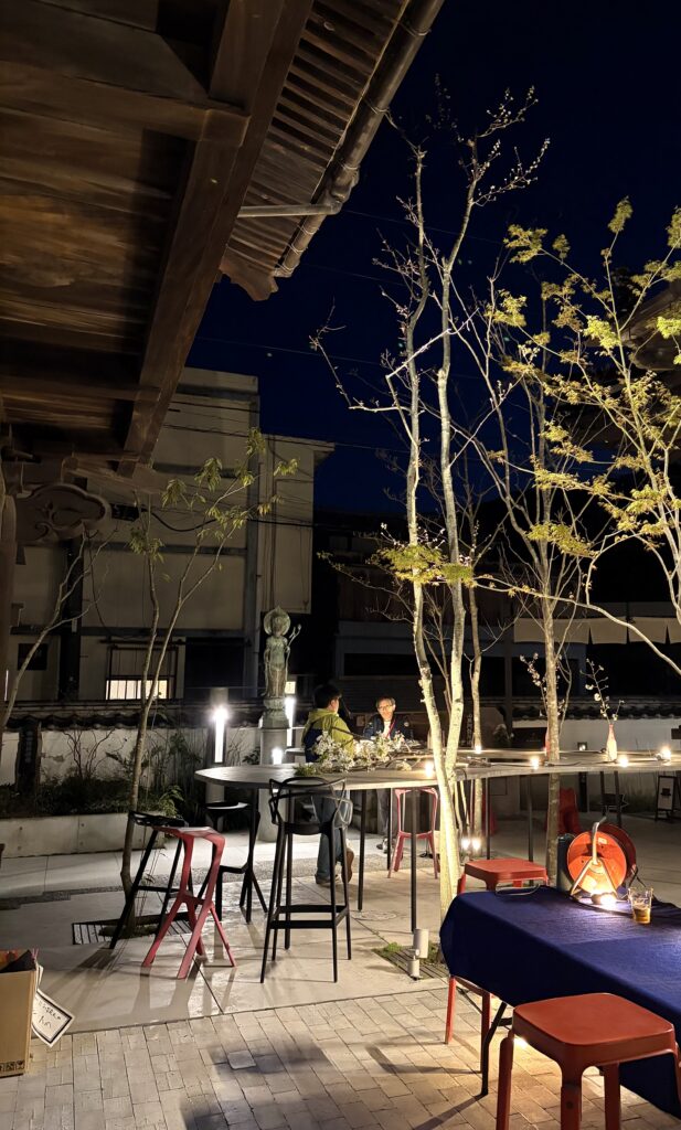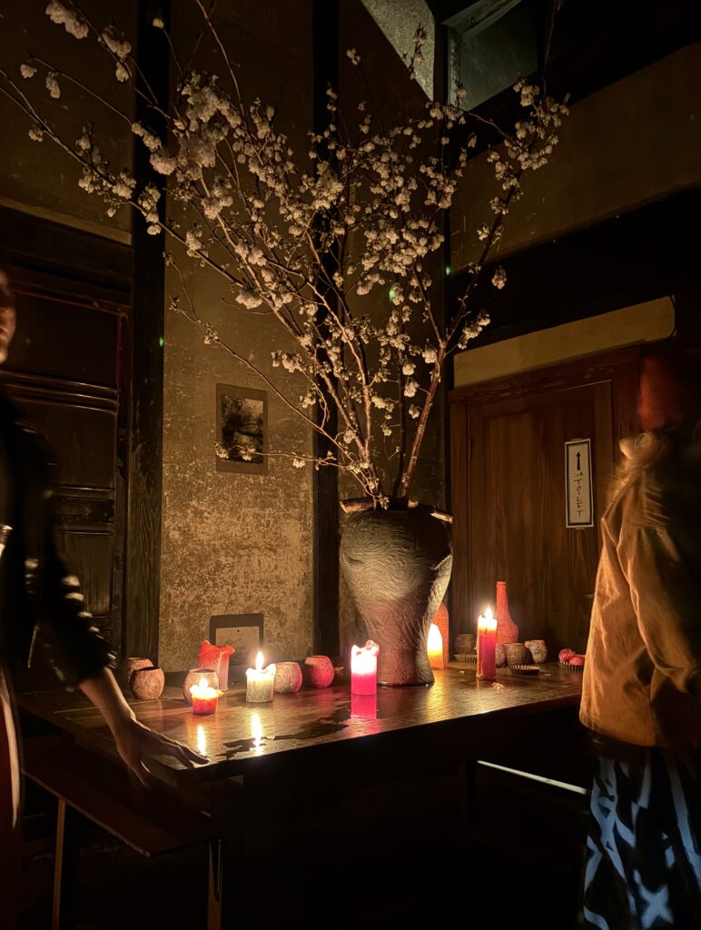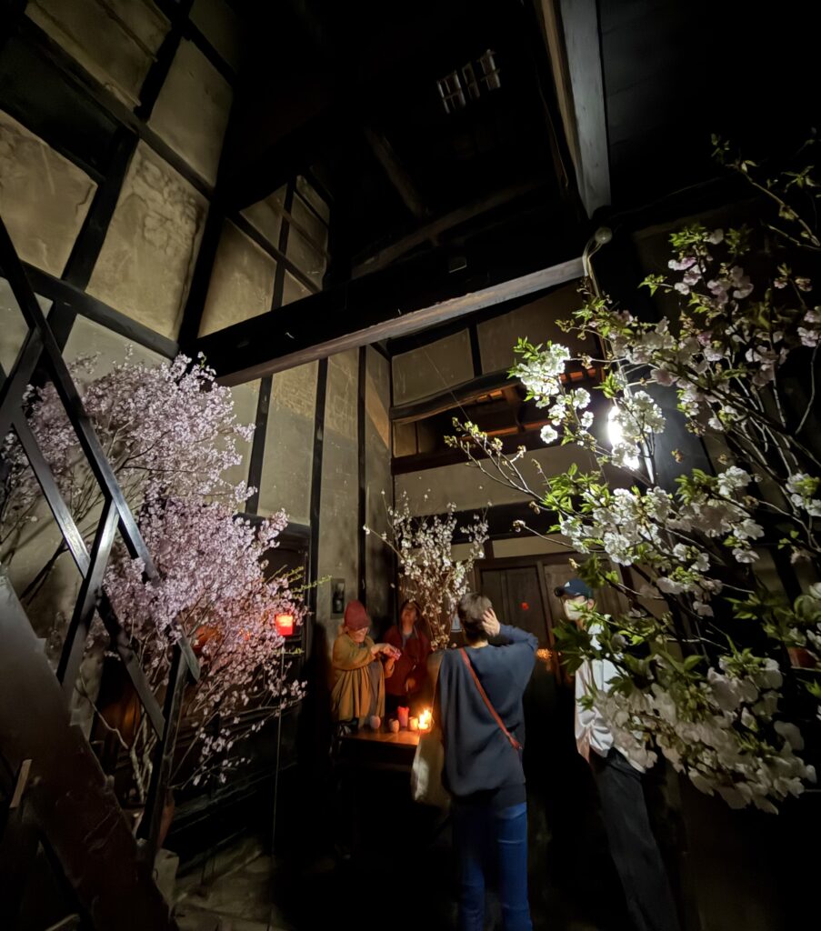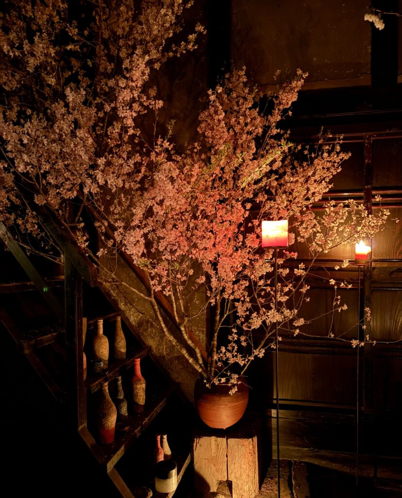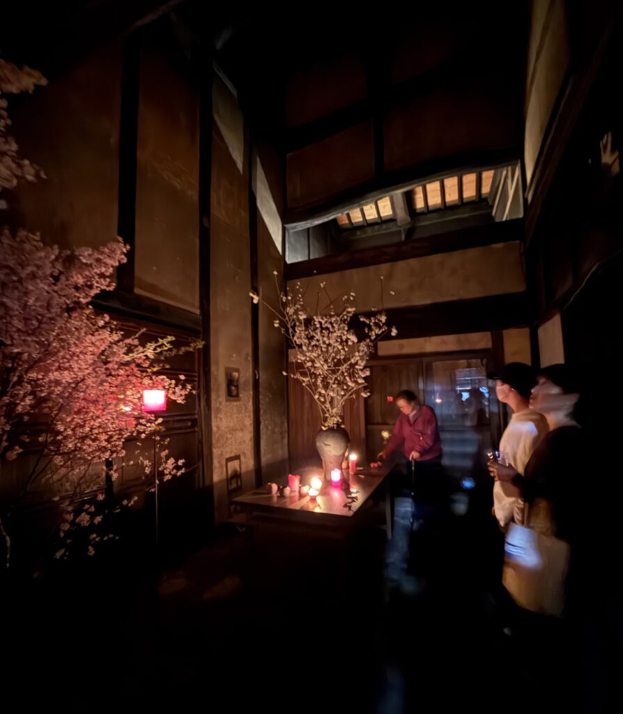 昨夜は、お寺と、料理人の方々と、蝋燭職人さんがコラボして開催された夜桜の宴に行った。