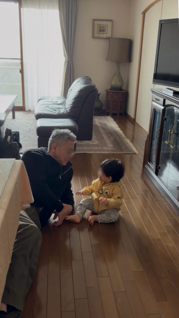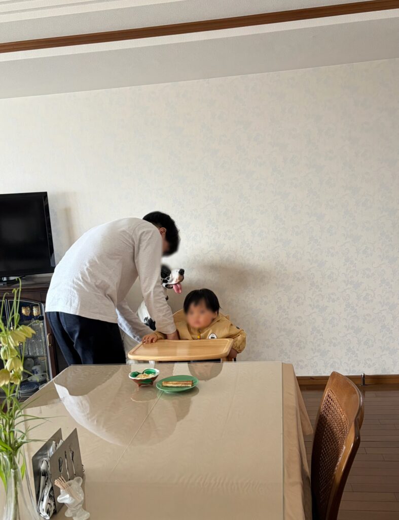 レンタルしてきたベビーチェアのある室内は、いつもの老夫婦だけで過ごす空間とは別物に感じられる♪