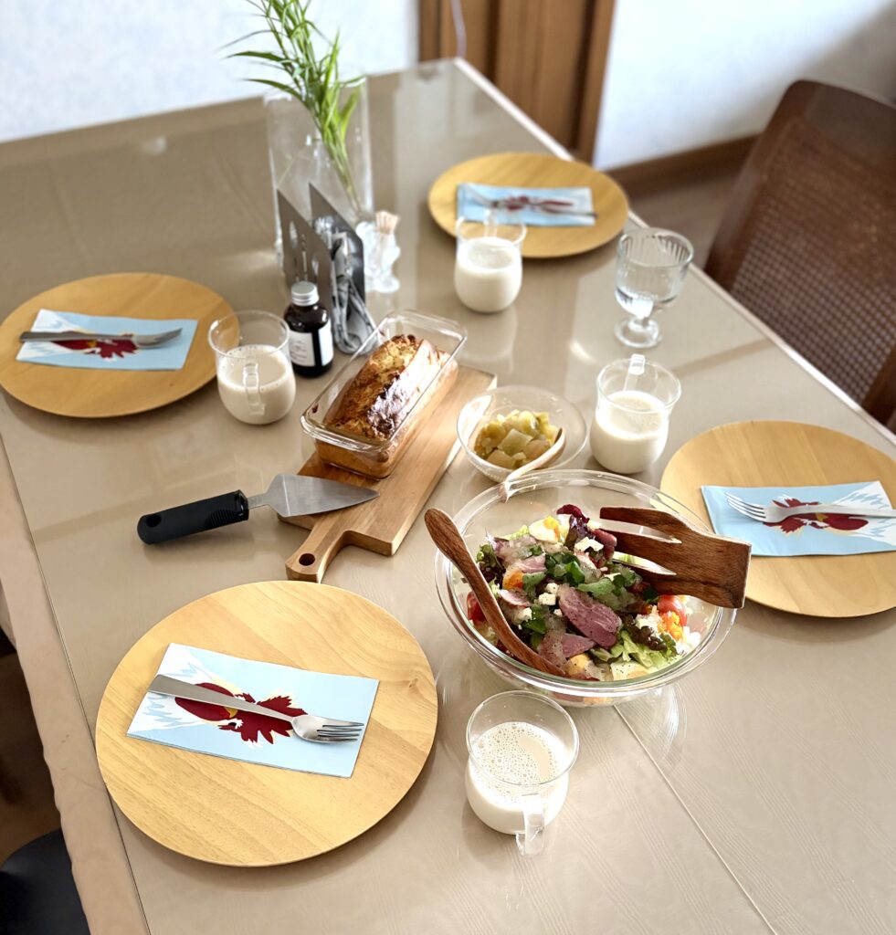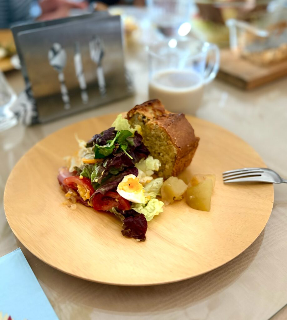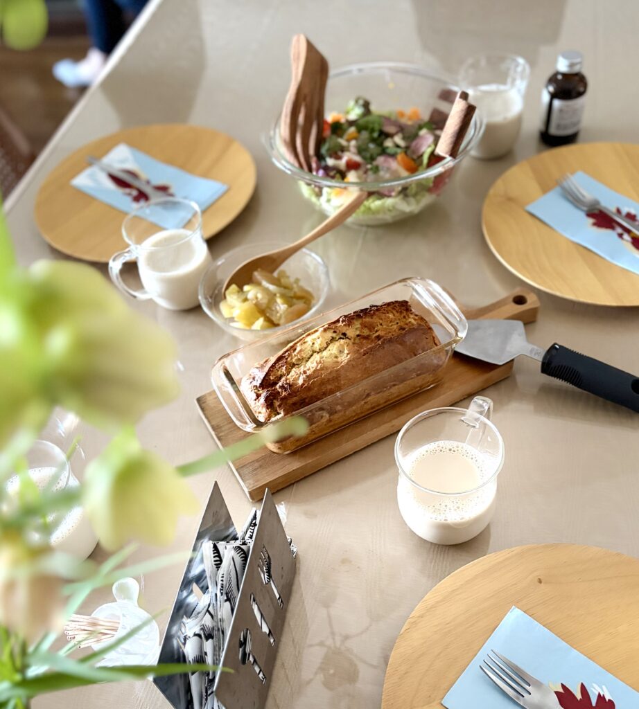 朝一でバナナケーキを焼き、具沢山のサラダを作り、