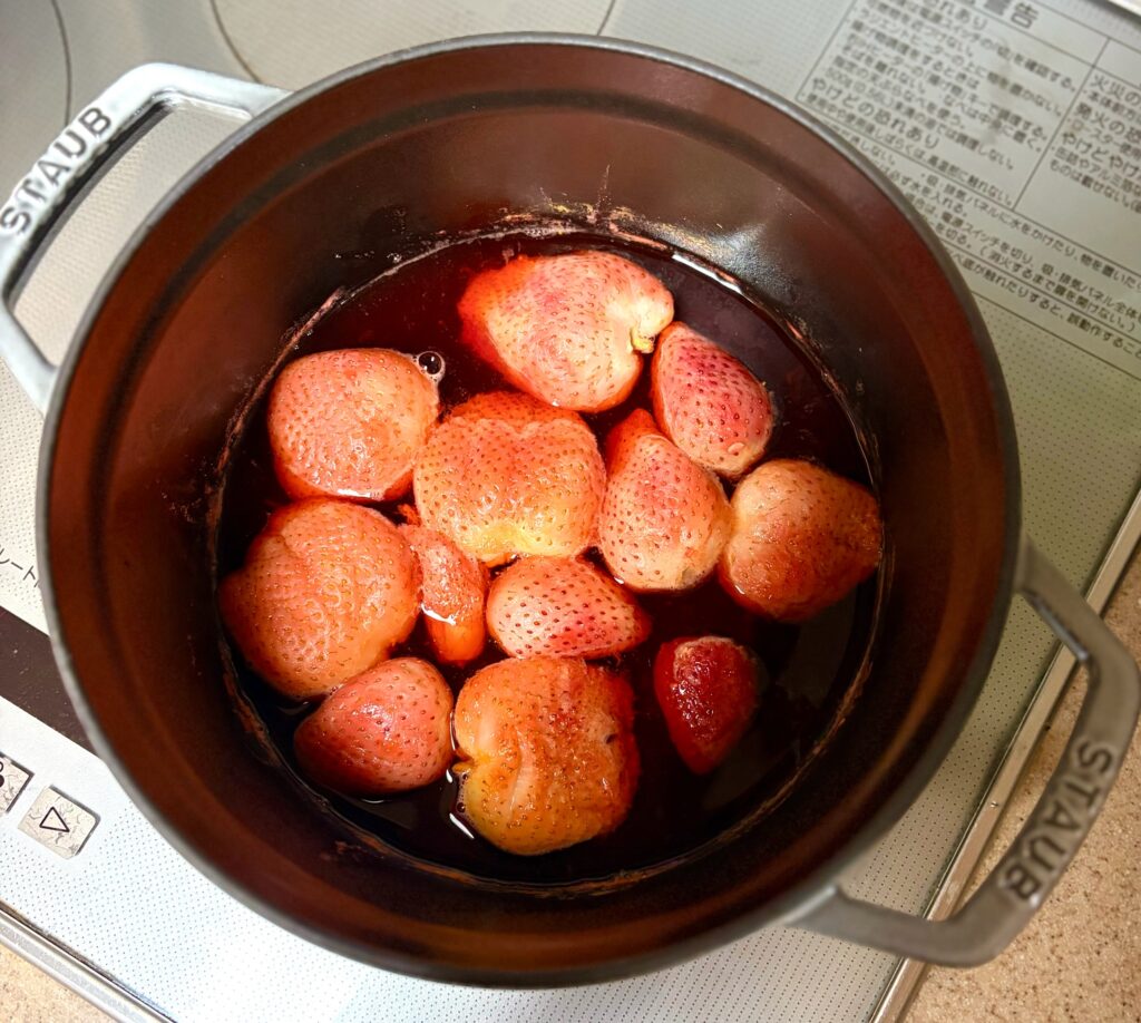 朝食に、4パックいただいた苺の最後の1パックを、コンフィチュールにして食べた。