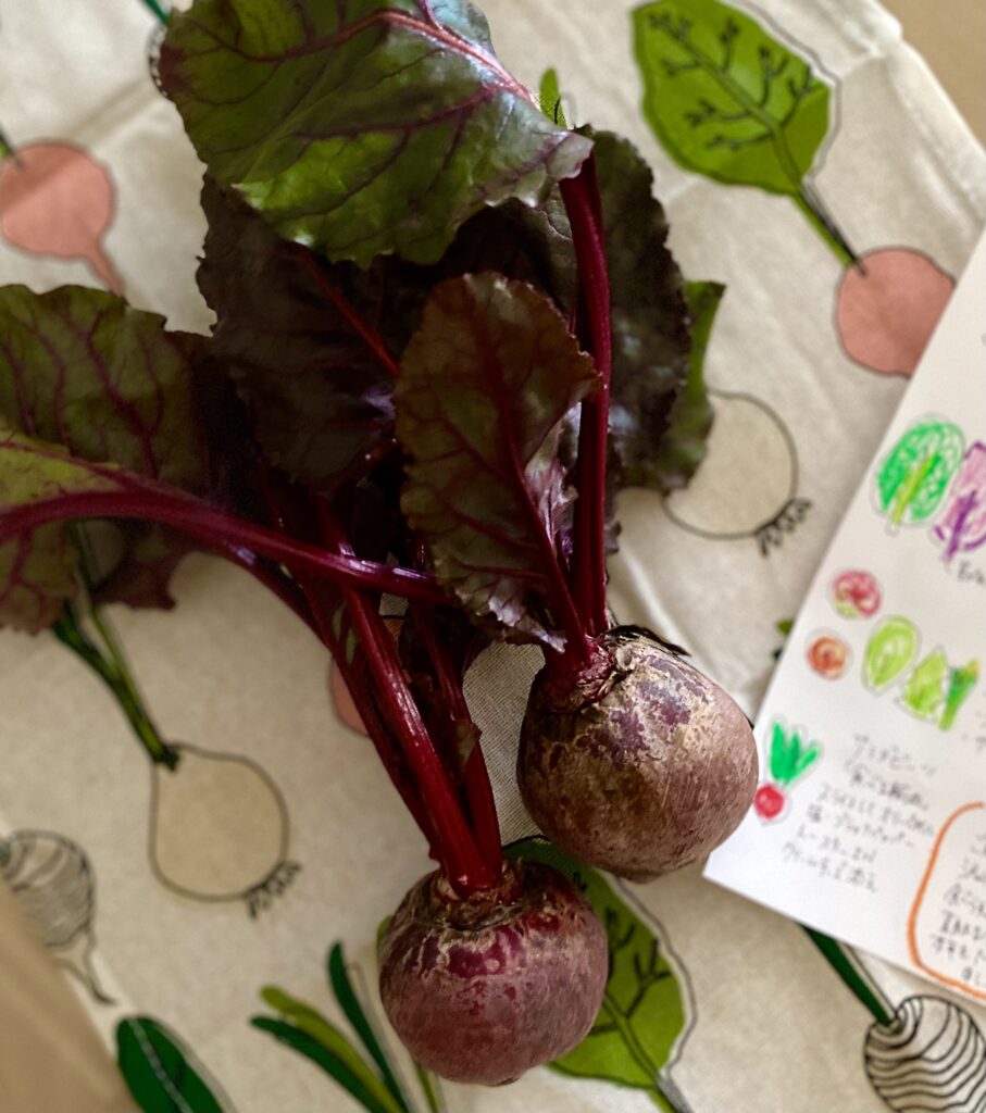 MANAFARMから届いた野菜の中に、今回も可愛いビーツがあった。