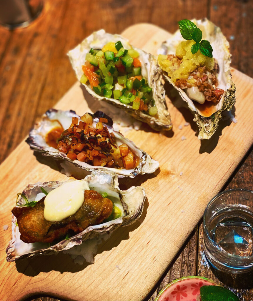 牡蠣のプレートをつまみながら、チリマルガリータを飲んだ。
