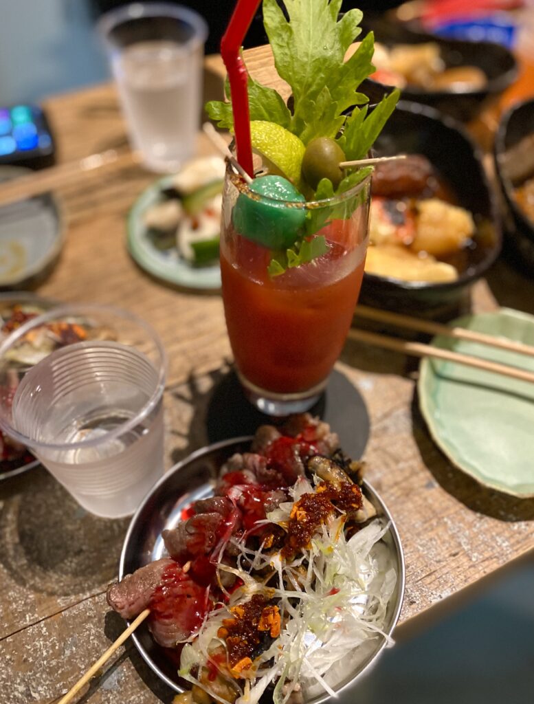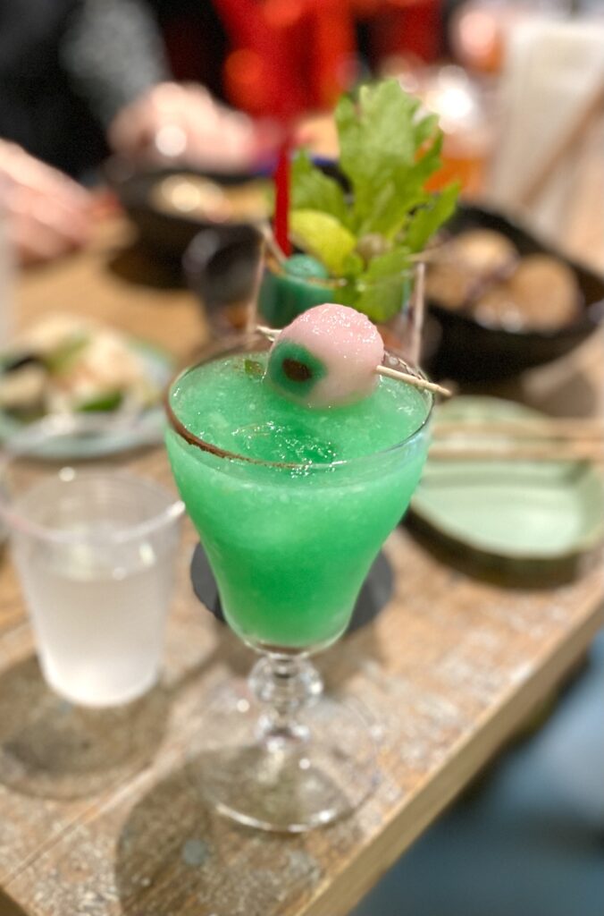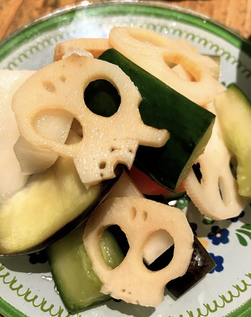 目玉餃子入りのおでんや、目玉白玉入りのカクテルや、ドクロの形のピクルスなど、