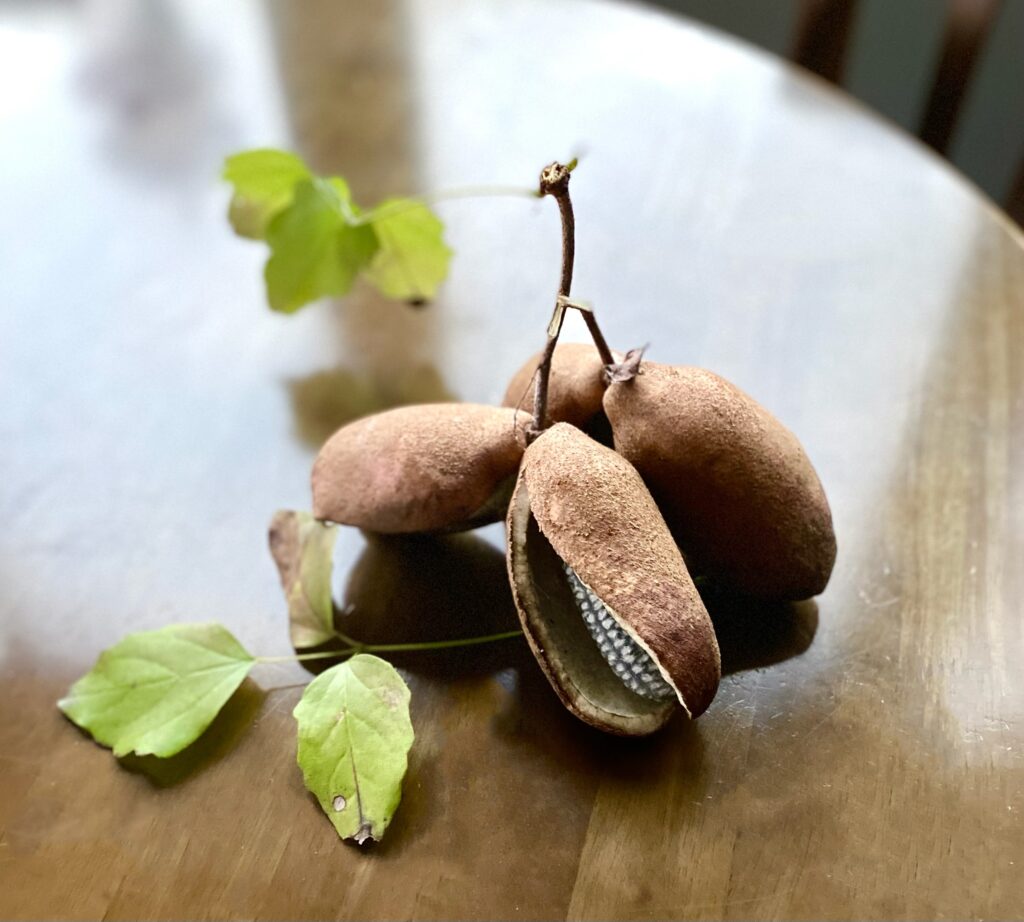 一緒にレッスンを受けている友人から、珍しいアケビをいただいた。