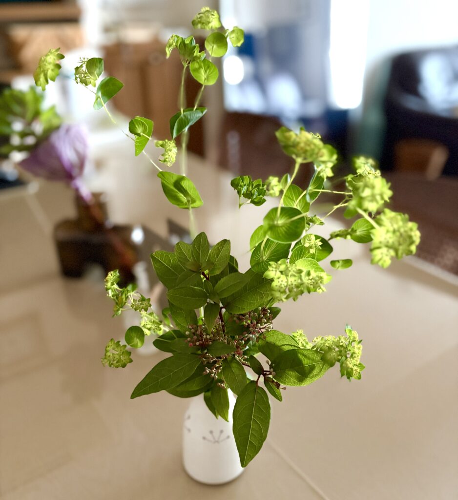友人から、お庭に咲いたビバーナムティヌスを分けていただいた。