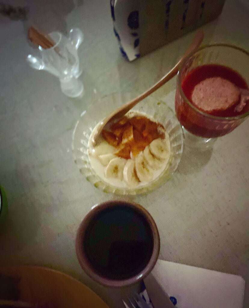オールナイトオーツには、シナモンを振った柿を載せた。