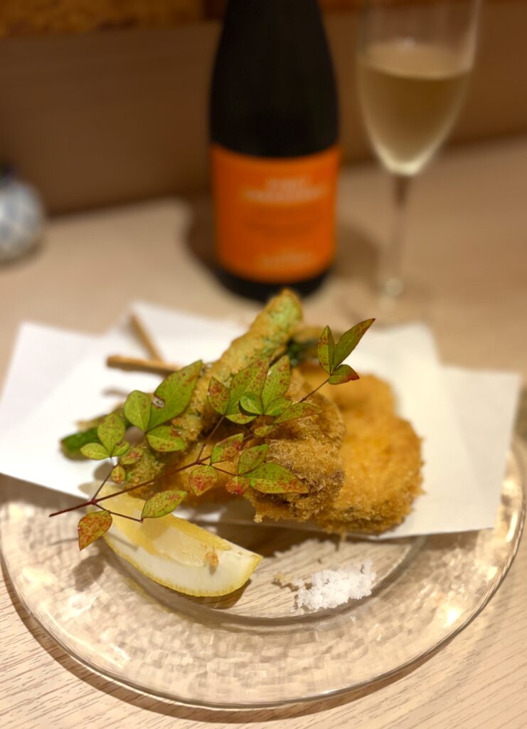 昨夜は、レモンと塩で食べるあっさり串揚♪