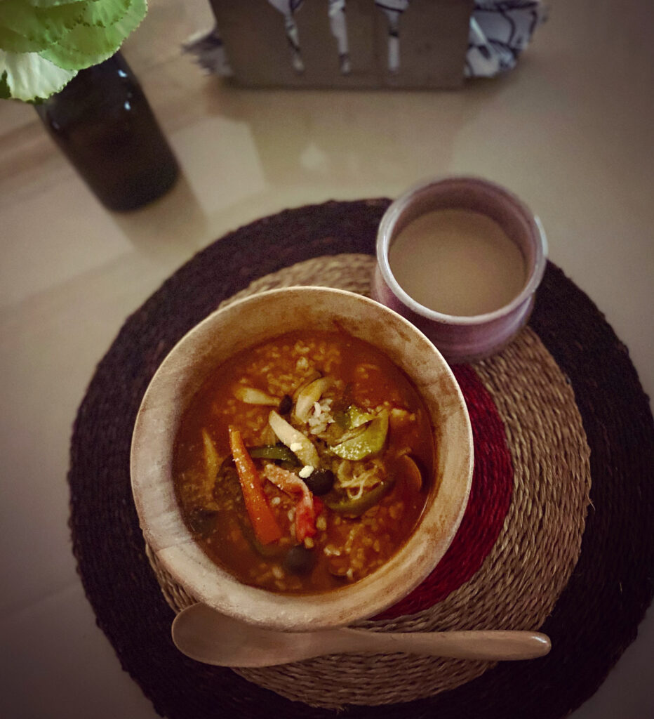 今日の昼食は、玄米ご飯のトマトリゾット。