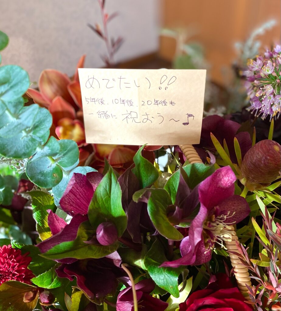 昨日の結婚記念日に、夫からもらった花に添えられていたメッセージカードには、