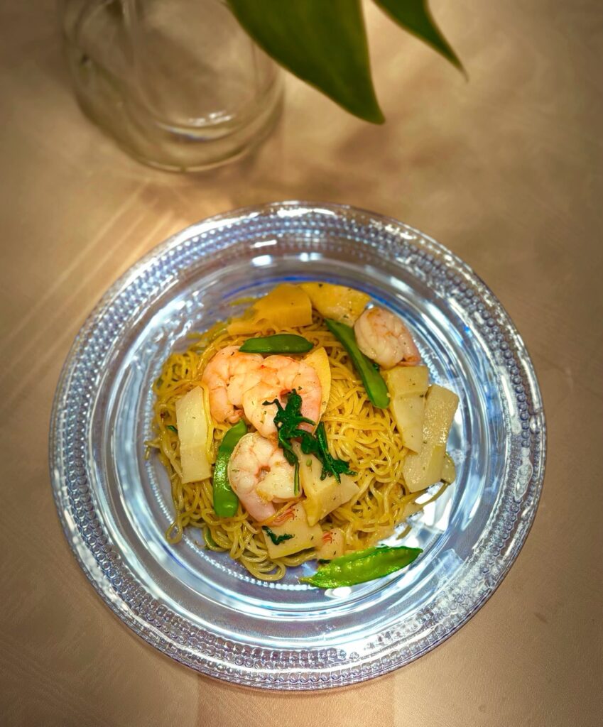 昨夜の筍料理は、筍入り焼きワンタンと、筍と海老のガーリック塩焼きそば。