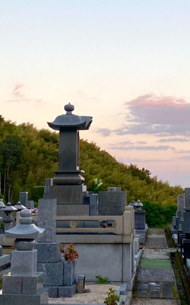 墓碑が、茜色に染まる海を、ぽ~~~っと眺めているように見えた。